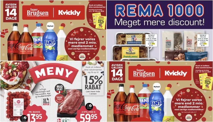 SuperBrugsen har et lignende tilbud på Coca-Cola, Fanta eller Schweppes, hvor du kan vælge mellem flere varianter i størrelser 125-150 cl til 11 kr. pr. flaske. Tilbuddet gælder fra 6. februar til 19. februar 2026.